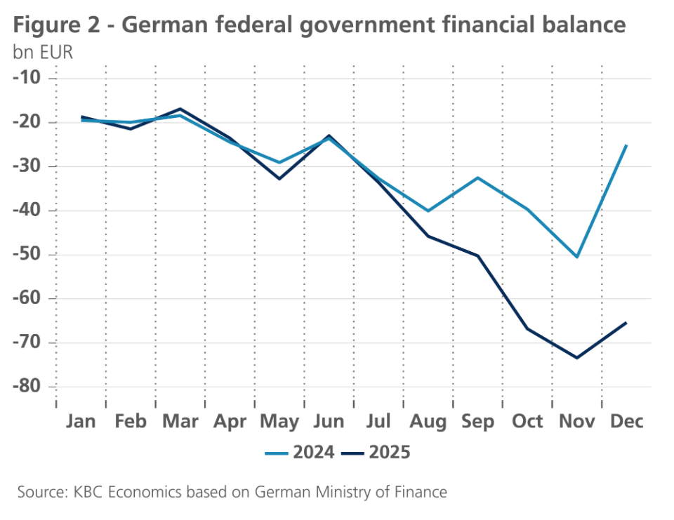 Both US and German 10-year bond yields rose slightly last month. This partly reflected the Fed's somewhat more wait-and-see stance in its easing cycle, but also the further upward normalisation of the German term premium. Indeed, with some delay, the German fiscal stimulus and the associated infrastructure and defence investments are gaining traction. A third factor was rising Japanese bond yields, which increased ahead of the snap parliamentary elections on 8 February. Indeed, the eventual winner of the elections, Prime Minister Takaichi of the Liberal Democratic Party, had made fiscally far-reaching election promises. In integrated global bond markets, this also had an upward impact on US and German yields.