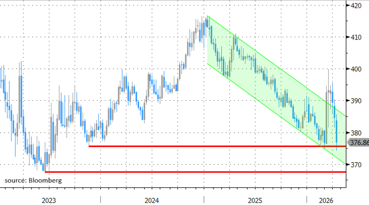 Les marchés financiers hongrois voient cela d'un bon œil. Magyar est en faveur de l'Europe et pourrait, s'il reçoit un mandat clair, rompre avec le discours anti-européen d’Orbán Les 20 milliards d'euros pourraient alors être vite débloqués. La perspective d’une coopération plus fluide avec l'Europe et d’une politique globalement plus orthodoxe profite aux actifs hongrois. Les primes de risque fondent. Ces derniers mois, cela s’est traduit par un recul des taux d’intérêt à long terme et une appréciation de la monnaie. La guerre au Moyen-Orient n’a pas refroidi les investisseurs optimistes, même si la Hongrie est fortement dépendante dans le domaine de l’énergie. Les taux des obligations souveraines à long terme se sont rapidement calmés — avant même le cessez-le-feu — et se situent aujourd’hui à environ dix points de base des niveaux d’avant le conflit. Le forint hongrois fait preuve d’une grande résilience. Après plusieurs mois d'appréciation, le cours EUR/HUF a atteint, fin février, son niveau le plus faible (donc le plus fort pour le forint) depuis début 2024, aux alentours de 375. La situation géopolitique a ensuite provoqué des turbulences, avec des pointes allant jusqu'à EUR/HUF 400. Mais cela s'est aujourd’hui tassé (377).