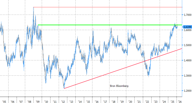 Ook de Canadese dollar verstevigde recent fors tegen een dollar in vrije val. Hogere grondstoffenprijzen helpen de loonie. Toch zorgt de meer dan gemiddelde blootstelling van de Canadese economie aan de wispelturigheid van het Amerikaanse beleid er voor dat Canadese munt tot nu toe geen ‘outperformer’ is in de algemene terugval van de dollar. Zo noteert de EUR/CAD (1.619) combinatie nog steeds kort bij top van oktober (EUR/CAD 1.6467), wat op zich het zwakste niveau was van de loonie tegen de eenheidsmunt sinds april 2009! Gezien de grote onzekerheid is het waarschijnlijk nog te vroeg voor een volgehouden comeback van de Canadese munt tegen niet-USD munten zoals de euro.