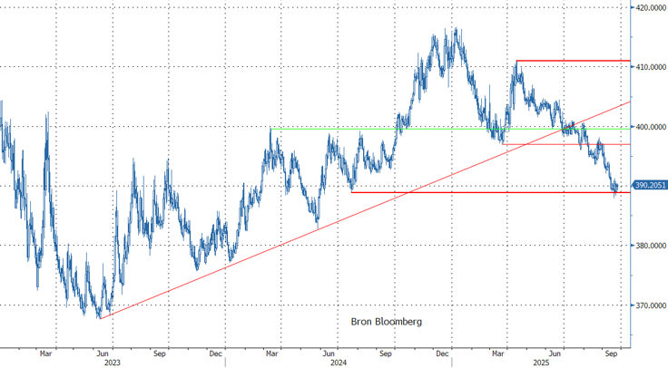 Op zich kan de groei wel een (monetair) duwtje in de rug gebruiken. Toch houdt gouverneur Varga vast aan een geduldig monetair beleid. Volgens de voorzitter bewijst de MNB de economie de beste dienst door de focus te houden op inflatiebestrijding en financiële stabiliteit. Wat dat laatste betreft, werpt het beleid resultaat af met een sterke forint (+5% versterking tegen de euro dit jaar). Dat helpt de inflatie te temperen, maar voorlopig nog onvoldoende om opnieuw over renteverlagingen te spreken. KBC denkt dat een verder klein stapje ( 25 bpn) er in het beste geval pas komt in december, als alle dominosteentjes goed vallen. In concreto moet Hongarije dit najaar eerst nog een beoordelingsronde van de kredietagentschappen doorstaan. Ook meer algemene soepele monetaire condities door Fed-renteverlagingen en een versterking van de forint richting EUR/HUF 385 kunnen hierbij helpen. Maar zelfs in zo’n scenario spreken we over voorzichtige bijsturing, niet van een nieuwe krachtige versoepelingscyclus. Zodra de MNB de beschikbare ruimte effectief gebruikt om het beleid te versoepelen, betekent dat mogelijk wel het eind van de HUF-rally. KBC verwacht EUR/HUF volgend jaar geleidelijk opnieuw boven 400.