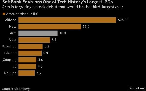 Er werden 95,5 miljoen American Depositary Shares waarmee Arm zichzelf kan kronen tot de grootste beursgang van het jaar. Masayoshi Son's SoftBank zal na het aanbod ongeveer 90% van het bedrijf bezitten. Om zijn langetermijnbelofte aan Arm te benadrukken, heeft SoftBank investeerders verteld dat het een meerderheidsaandeelhouder zal blijven en heeft besloten niet meer aandelen te verkopen dan het belang van 9,4% dat het al op de markt bracht toen de beursgang overtekend werd, aldus de bronnen.
