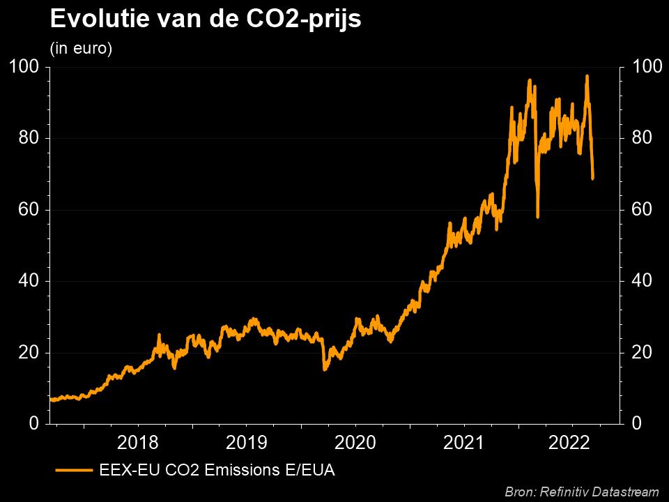 Dat de CO2-prijzen eerder een erg hoge vlucht namen werd aangestuurd door de hoge gasprijzen, wat de vraag naar kolen aanzwengelde. En dus ook naar CO2-certificaten, ter compensatie. Die prijsevolutie van gas en steenkool maakte het steeds duurder voor vervuilers die hun CO2-uitstoot moeten afkopen via certificaten en ondersteunt op die manier behoorlijk de energietransitie van de Europese regio. Baarde die stijging zorgen? Net niet, aangezien dat net het doel is van de regelgevers. Baart de daling dan ook zorgen? Eveneens niet, aangezien de energiecrisis er vandaag vanzelf voor aan het zorgen is dat we de Russische gaskraan afschakelen, wat op langere termijn idealiter vervangen moet worden door schonere energie.