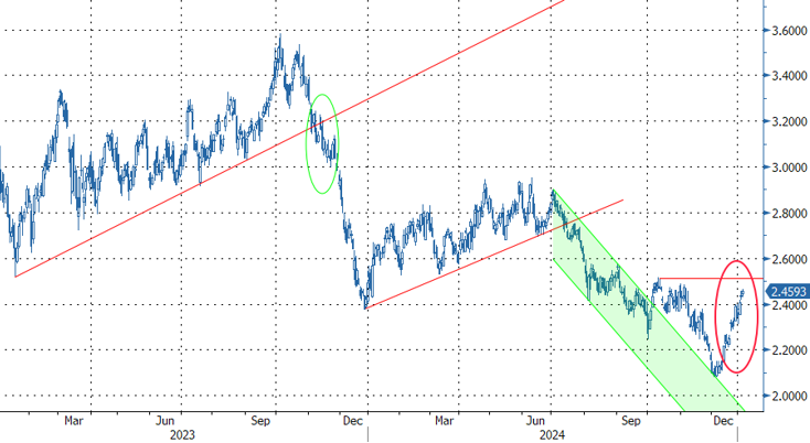 Op de decemberbeleidsvergadering bracht de ECB een dubbele boodschap. Neerwaarts bijgestelde groei- en inflatievooruitzichten bevestigden het geloof dat inflatie langzaam maar zeker op weg is naar de 2%-doelstelling, ook al vertragen stevige loongroei en diensteninflatie het proces. Ondanks dat vertrouwen hield de ECB tegelijk toch vast aan een data-afhankelijke aanpak. Op de wisselmarkt realiseerde de euro gisteren én vandaag een opvallende comeback.