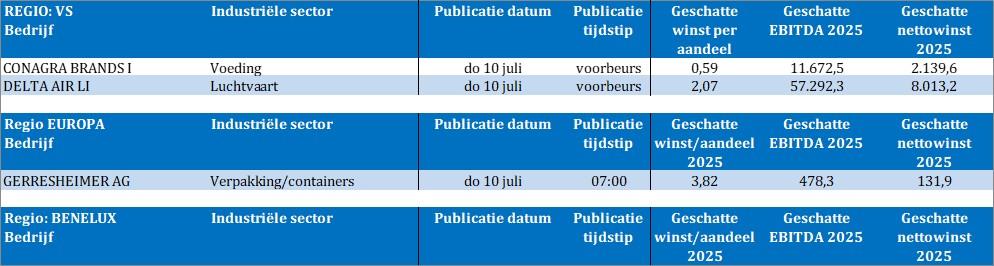 Bedrijfsresultaten komen er van Delta Air Lines, Conagra Brands en Gerresheimer.