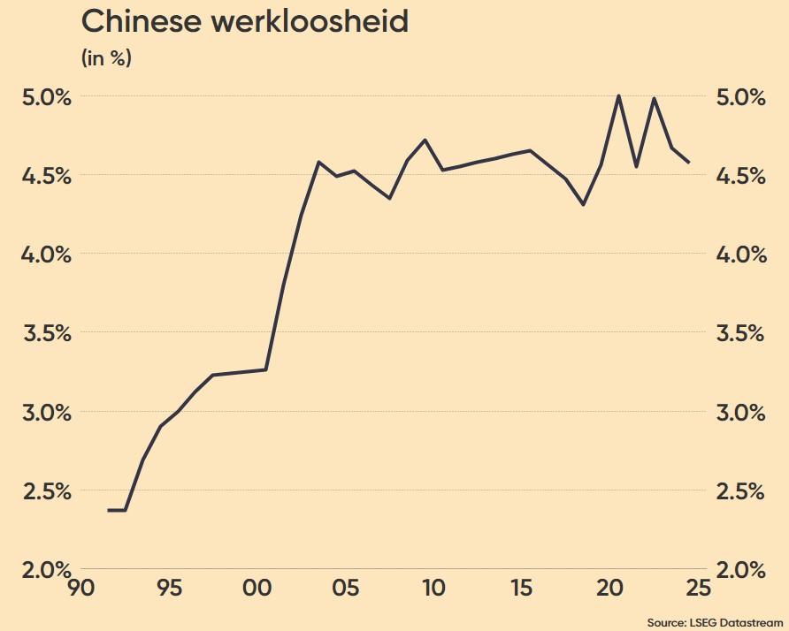Afsluiten doen we in China, alwaar de “Chinese Staatsraad” nieuwe maatregelen nam om de werkgelegenheid te stabiliseren. Denk aan uitgebreide socialezekerheidssubsidies, speciale leningen en gerichte steun voor werkzoekende jongeren. En dat is nodig omdat de binnenlandse economie het moeilijk blijft hebben, terwijl de tarievenoorlog op de exportsector weegt. Beide factoren zetten opwaartse druk op de Chinese werkloosheid, die in mei gelukkig wel relatief laag bleef op 5%. Die teller noteerde in februari nog op 5,4%, hoogste peil in twee jaar. De jeugdwerkloosheid voor 16- tot 24-jarigen bedraagt niettemin 14,9%, terwijl dat voor 25- tot 29-jarigen 7% bedraagt.