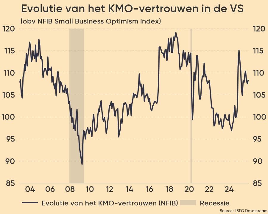 nteressant genoeg lijken Amerikaanse KMO’s zich daar niet veel van aan te trekken. Het sentiment steeg er in september tot het hoogste peil in vier maanden tot 92,1 punten, omdat 46% van de bedrijven de vacatures niet ingevuld kregen. Bij 30% van hen blijft inflatie wel het belangrijkste probleem, maar ook dat is niet nieuw natuurlijk. We geven wel mee dat de barometer in juni 2021 nog op 112,2 punten afklokte.