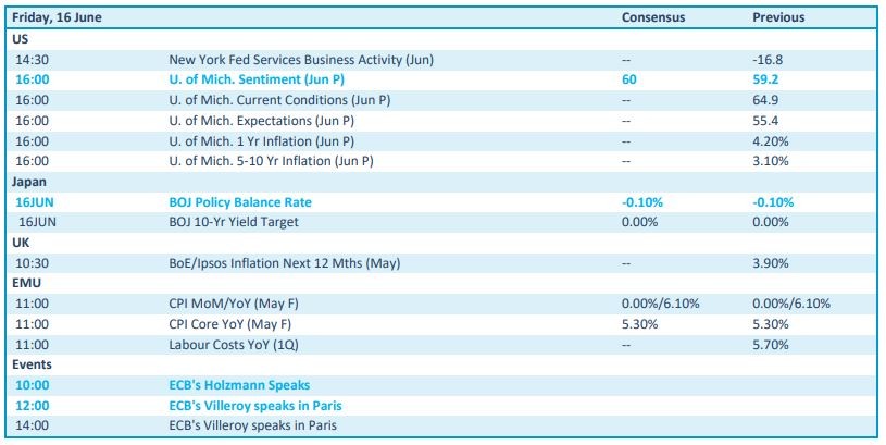 Vandaag hebben we met de Bank of Japan al één van de hoogtepunten gehad, maar is het niettemin ook uitkijken naar de sentimentsindicatoren van de Universtiteit van Michigan die naar verwachting een bescheiden klim moeten laten zien. We luisteren ook nog mee naar de speeches van de ECB-leden Villeroy en Holzmann. De resultatenkalender maakt er trouwens een verlengd weekend van.