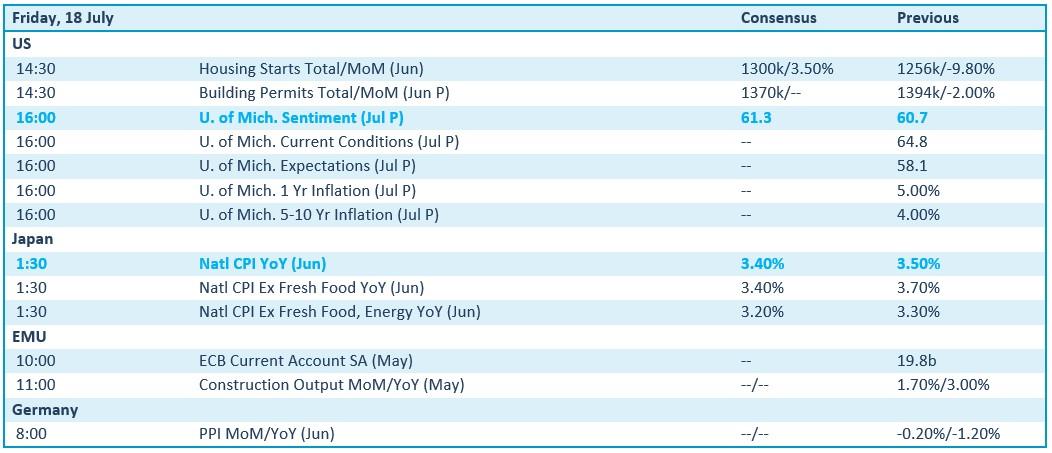 Het antwoord op deze vraag is duidelijk én simpel: weinig! De VS leveren wel nog een update van de sentimentsindicator van de universiteit Michigan en inzicht in het aantal nieuwbouwhuizen, beide over juni. Duitsland komt aandraven met de evolutie van de producentenprijzen over juni.
