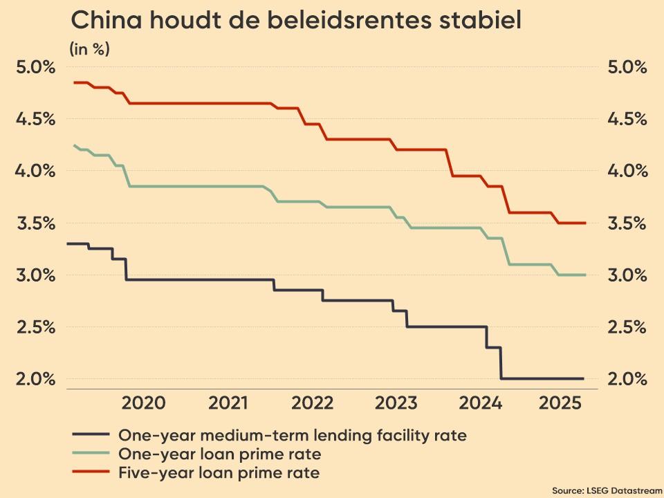 De nieuwe Chinese beurswinst wortelt opnieuw in de rentepolitiek. De maandelijkse rentevergadering die vannacht plaatsvond resulteerde in een lagere 1-jaars prime rate (-25 basispunten tot 3,10%) en 5-jaars prime rate (-25 basispunten tot 3,6%). De rente op leningen werd voor het laatst verlaagd in juli, en deze verlaging werd eerder al netjes doorgetelefoneerd, nadat vorige maand de middellangetermijnrente al met 30 basispunten daalde.