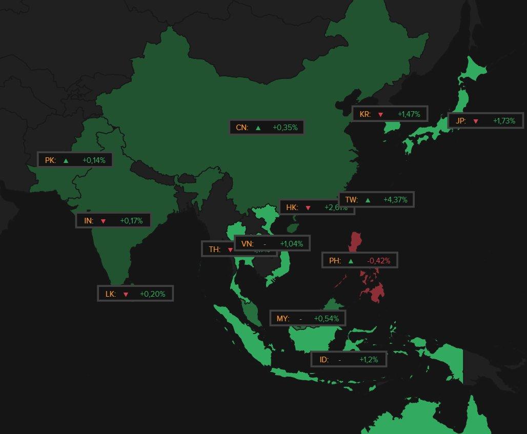 Azië stoomde vannacht ook lekker op, met 0,3% winst voor China, 2,2% voor Hongkong, 1,5% voor Zuid-Korea en Japan en tot 4,3% voor Taiwan. De technologiesector deden het overal goed, zodat de HS Tech index vlot 2,6% aandikte. Het optimisme kreeg daarnaast nog een duw in de rug vanuit China, waar naar verschillende Chinese provinciale en gemeentelijke overheden naar verluid overwegen om via alweer een nieuwe stimuleringsronde de consumptie extra te stimuleren.
