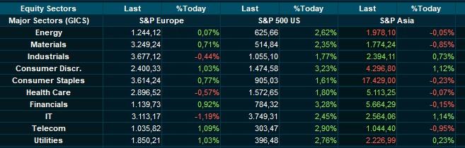 Aandelenbeleggers op Wall Street zagen het ook graag gebeuren en stuurden de indexen ook na het beursslot nog eens 1% hoger. Alle 11 belangrijke sectoren in de S&P 500 gingen erop vooruit, waarbij financials en consumentengoederen de grootste procentuele winsten boekten.