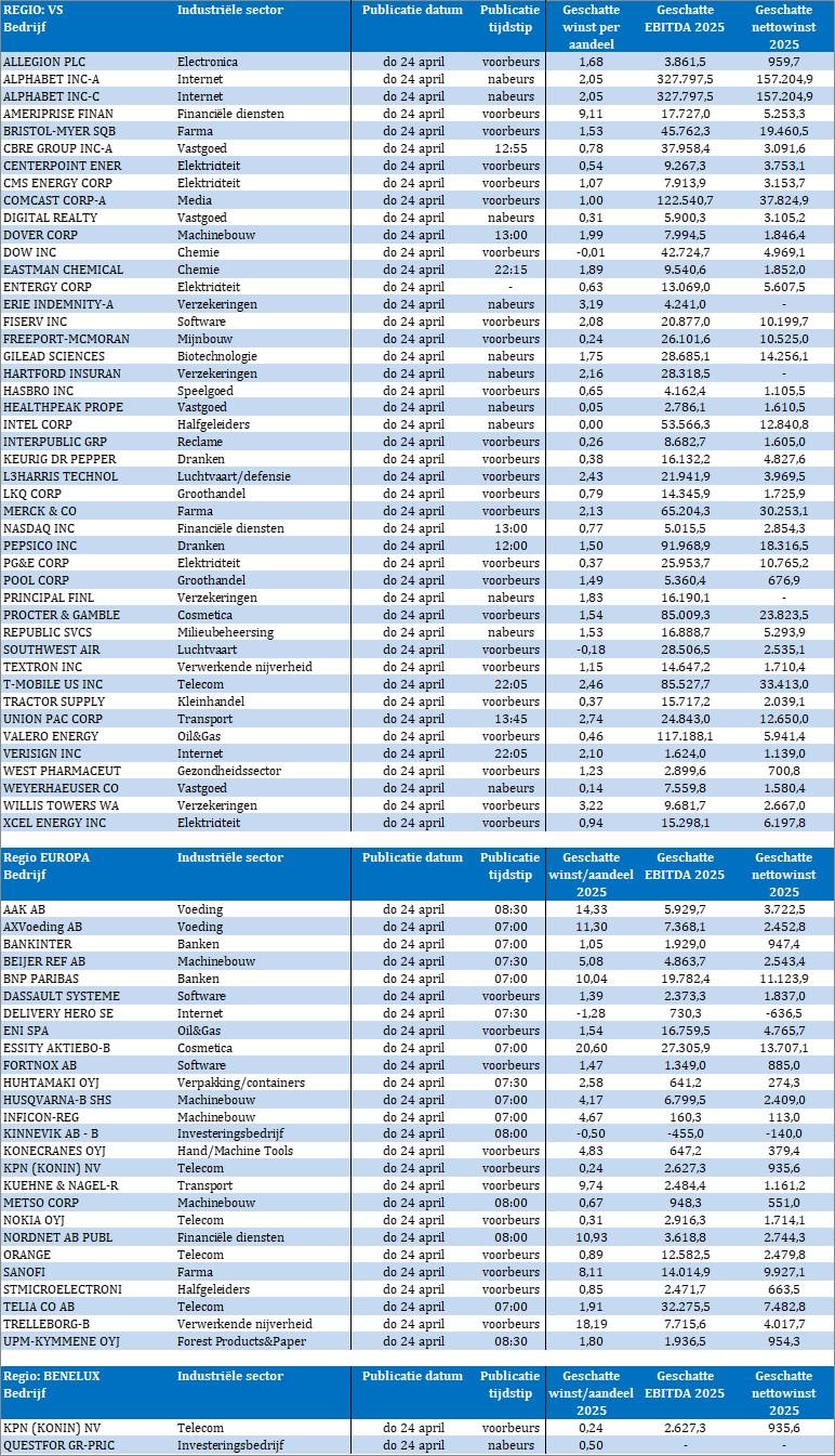 Qua bedrijfsresultaten wordt het ook vandaag weer razend druk, en dus interessant. Op het menu staan opnieuw een rist hele interessante namen, waaronder Alphabet. Benieuwd of de advertentiemachine bleef draaien temidden van het tarieventumult.