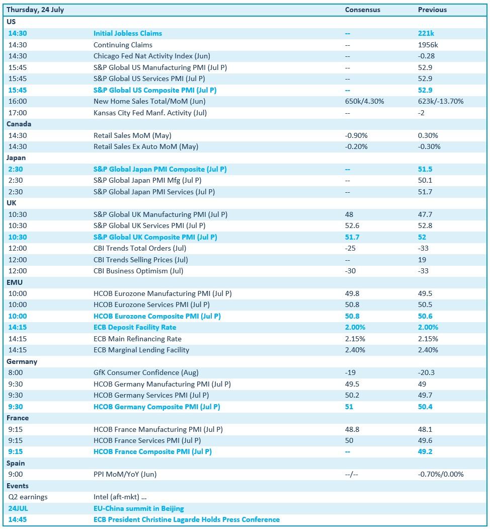 Minder belangrijk nieuws komt verder nog uit de VS, via de wekelijkse update van de nieuwe werkloosheidsaanvragen en de maandelijkse update van het zakelijke vertrouwen, en Duitsland, waar we een update krijgen van het consumentenvertrouwen.