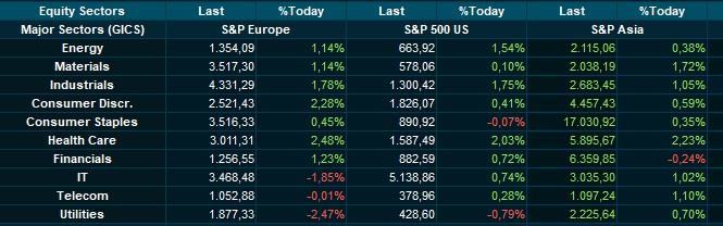 Verder niets dan vreugde en jolijt, met name bij de consumentenaandelen (+2,3%), farmabedrijven (+2,5%) en de banken (+1,2%). Dat was niet anders in de VS en Azië, waar naast dezelfde winnaars ook de cyclische waarde fors (+1,5%) van leer trokken. Het kan niet op, zo lijkt het wel. Anders gezegd: benieuwd of de lawine aan bedrijfsresultaten ons de komende weken op andere gedachten kan zetten.
