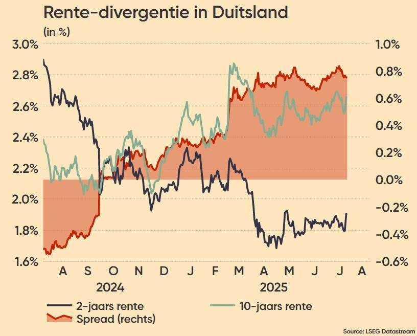 De obligatiemarkten volgden alles op de voet, maar moesten niet van gedacht wisselen. De Amerikaanse 2- en 10-jaarsrentes (3,91% en 4,39%) bewogen licht hoger (om en bij de 2 basispunten), zodat de dollar stabiel bleef op laag niveau (€1 = $1,1741). In Duitsland, en bij uitstek dus in heel Europa, blijven de rentes wél onder opwaartse druk staan, zodat de tellers op 2 en 10 jaar er afklokten op 1,91% en 2,67%.