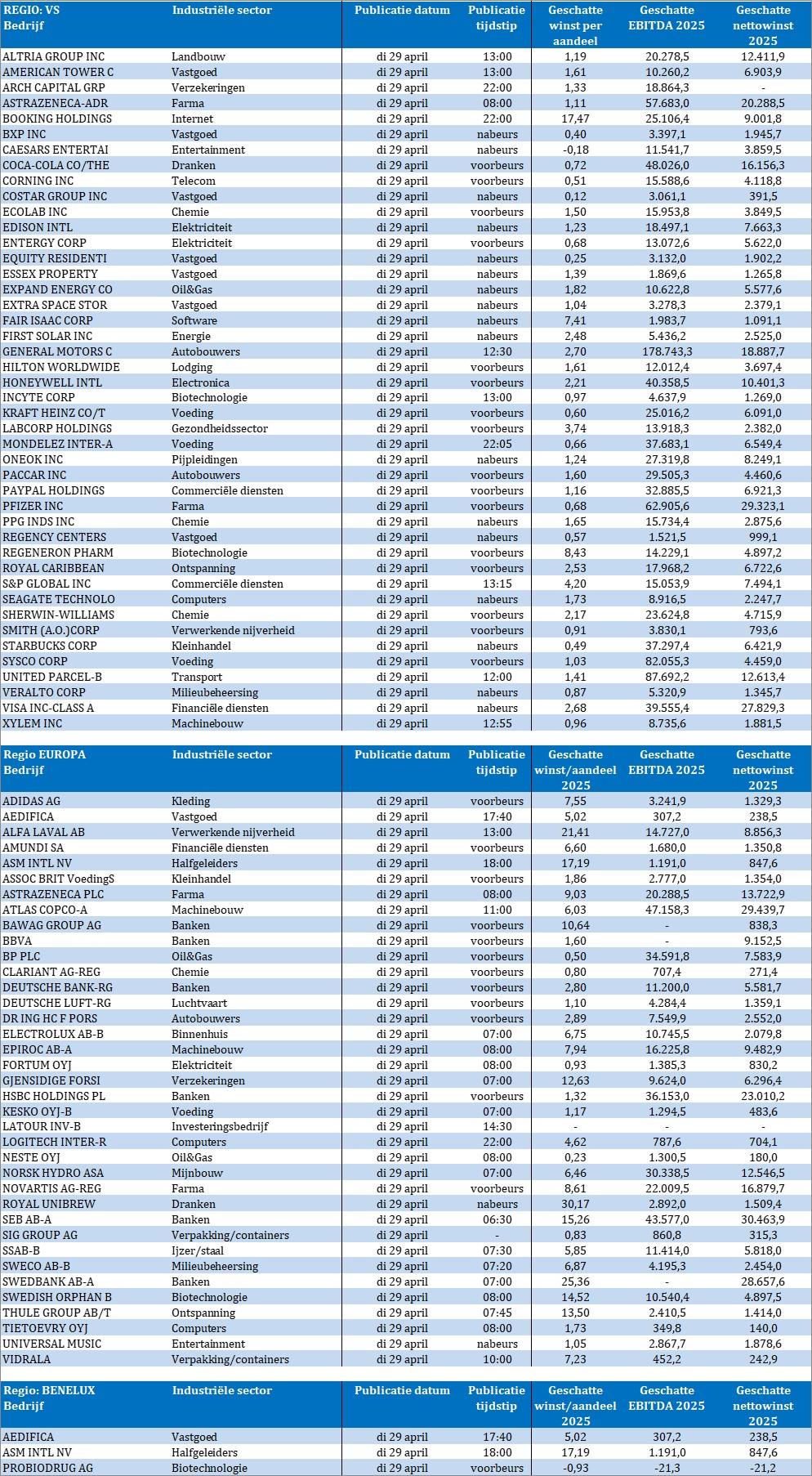 Het vertrouwen in de ‘US of A’ is daarmee alleszins nog niet terug, wat verklaart waarom de dollar aanhoudend zwak blijft tegenover de euro (€1 = $1,1386). Zelfs de goudprijs (-0,9% tot 3.313 dollar per ounce) had er gisteren geen zin in, wat op voorzichtig verbetering van het risicosentiment wijst: noem gisteren dus een overgangsdagje, maar dan wel eentje met een pak bedrijfsresultaten om de aandacht af te trekken. En uit die hoek komt vandaag nog véél meer moois.