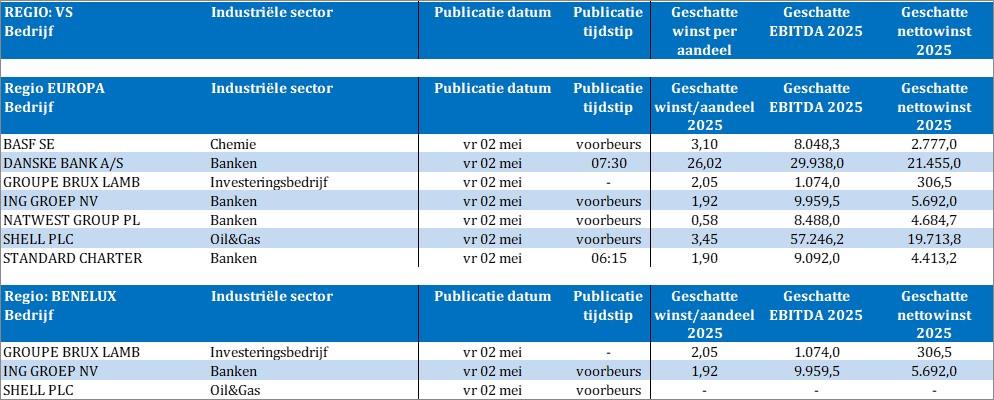 Bedrijfsresultaten komen er van BASF, Dankse Bank, GBL, ING, NatWest Group, Shell en Standard Chartered.