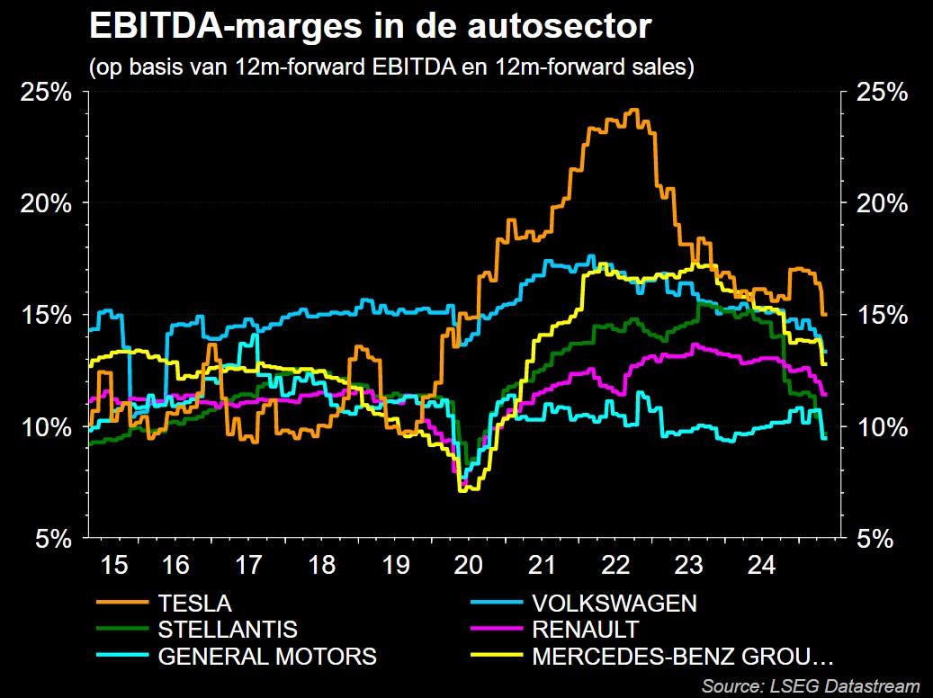 Beide liggen minstens in lijn liggen met de nog steeds hoge verwachtingen, al zijn er natuurlijk uitzonderingen. Zo trok General Motors ondanks sterke eerste kwartaalresultaten de eerder jaarprognose in en zag UPS de kwartaalomzet dalen omdat de vraag naar transport begint af te koelen. In Europa verlaagde sportautofabrikant Porsche de vooruitzichten voor 2025 door de zwakte in China en de Amerikaanse tarieven, terwijl Mercedes, Stellantis en Volkswagen vandaag aan de bel trekken. Zelfde verhaal voor Melexis, waar de verwachtingen ook getemperd moesten worden.