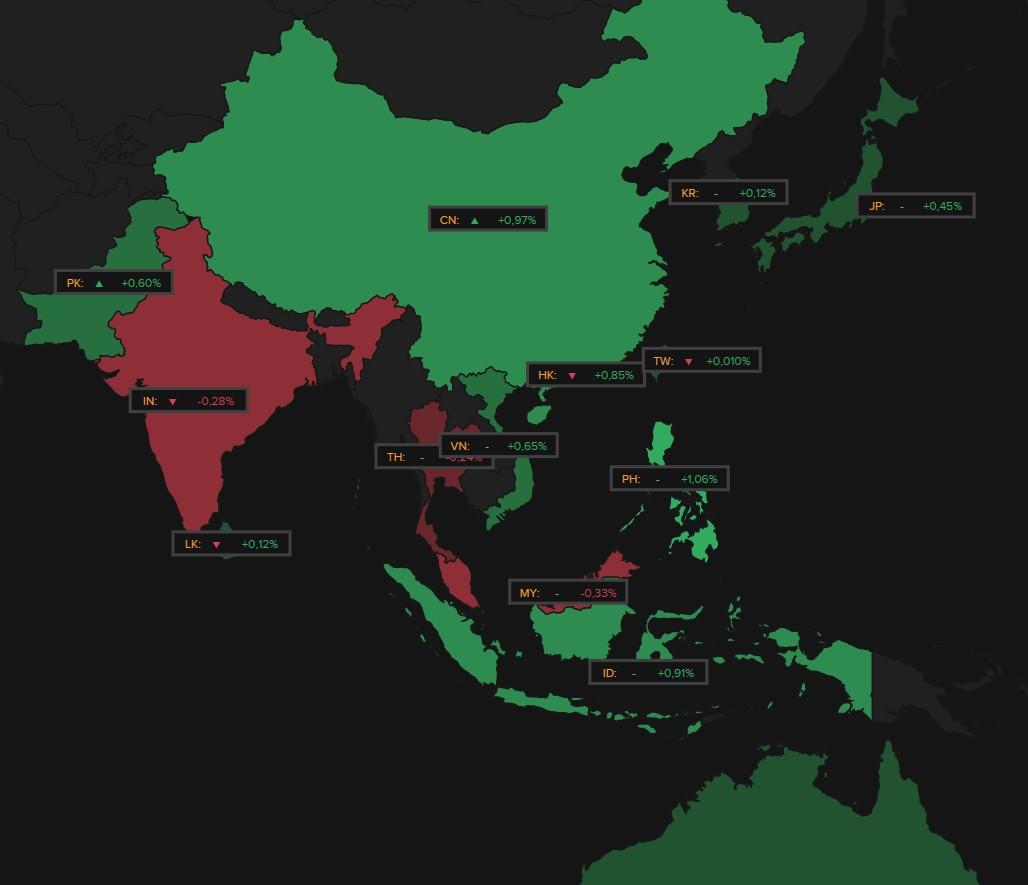 Op sectorniveau leiden Aziatische technologieaandelen de aanval, met opmerkelijke stijgingen van Talkweb Information (2,5%), Shijiazhuang Chan (4,3%), Shenzhen Tianyuan (20%), Gigadevice Semiconductor (2,7%) en Eoptolink Technology (4,7%).