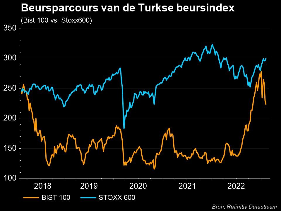 Maar de onzekerheid over het politieke en monetaire beleid woog op de index in de aanloop naar de belangrijke presidents- en parlementsverkiezingen in mei. President Erdogan staat misschien wel -voor zijn spannendste race in meer dan 20 jaar. Haalt de man het, of haalt hij het niet ?