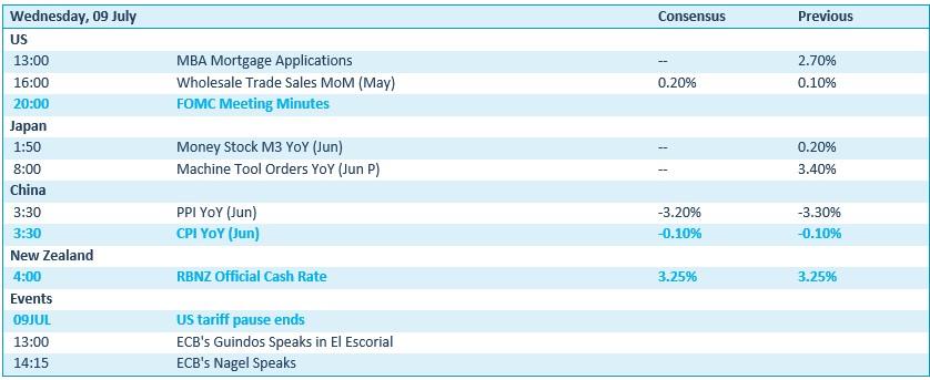 De economische kalender oogt redelijk leeg, met wat leesvoer vanuit de VS (de publicatie van de notulen van de recente Fed-vergadering) en Japan (M3 geldhoeveelheid in juni). Niet te vergeten zijn we vandaag aangekomen bij de officiële tariefdeadline, al is die ondertussen al verwaterd, verschoven en gemilderd.