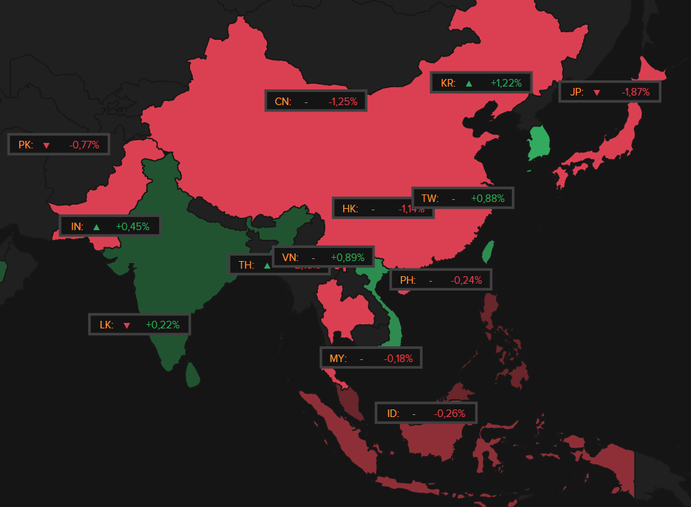 De Aziatische aandelen kozen er ook voor om op adem te komen. De Chinese beurzen verliezen zo’n 1,1% en Japan 1,9%, terwijl Zuid-Korea (+1,2%), India (+0,2%) en Taiwan (+0,9%) goed weerstand boden. De overkoepelende MSCI Asia-Pacific schommelde daardoor tussen winst en verlies (-0,1%).