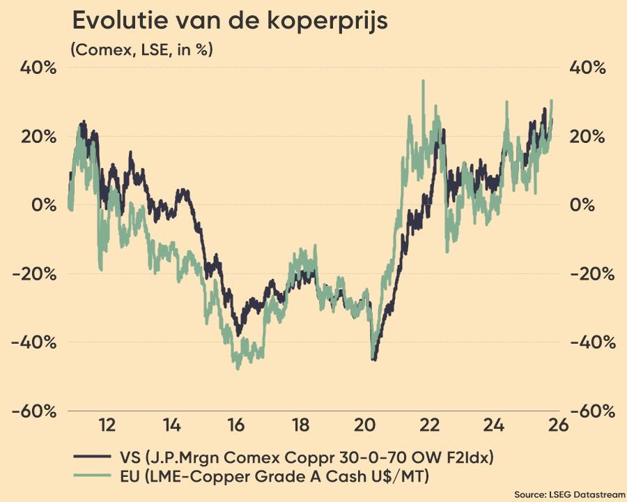 Op de grondstoffenmarkten noteren we een nieuwe stijging van de koperprijs tot meer dan $5 per pond, het hoogste peil in twee maanden, en dat omwille van verstoringen in het aanbod. Eerder al wakkerden kampte de sector al met problemen in de Chileense en Indonesische mijnen en tot op vandaag blijft de productie in de Indonesische Grasberg-mijn beperkt.