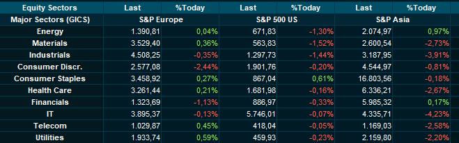 Een topdag werd het gisteren niet, ondanks de hoerastemming omtrent het conflict tussen Israël en Palestina. De Euro Stoxx 600 verloor 0,4%, met name onder druk van de bankaandelen (-1,1%). HSBC trok in die sector de kop (-6%) omwille van de uitkoop van de Hang Seng Bank voor meer dan 290 miljard HK$. En Lloyds (-3,4%) had last van oplopende kosten door een Brits onderzoek naar autofinanciering. Ook de auto-aandelen kregen (alweer) klappen, nadat Ferrari (-16%) de vooruitzichten voor 2030 neerwaarts bijstelde en zijn elektrificatiedoelstellingen afzwakte, terwijl ook de consumentenaandelen dieprood kleurden (-2,4%)