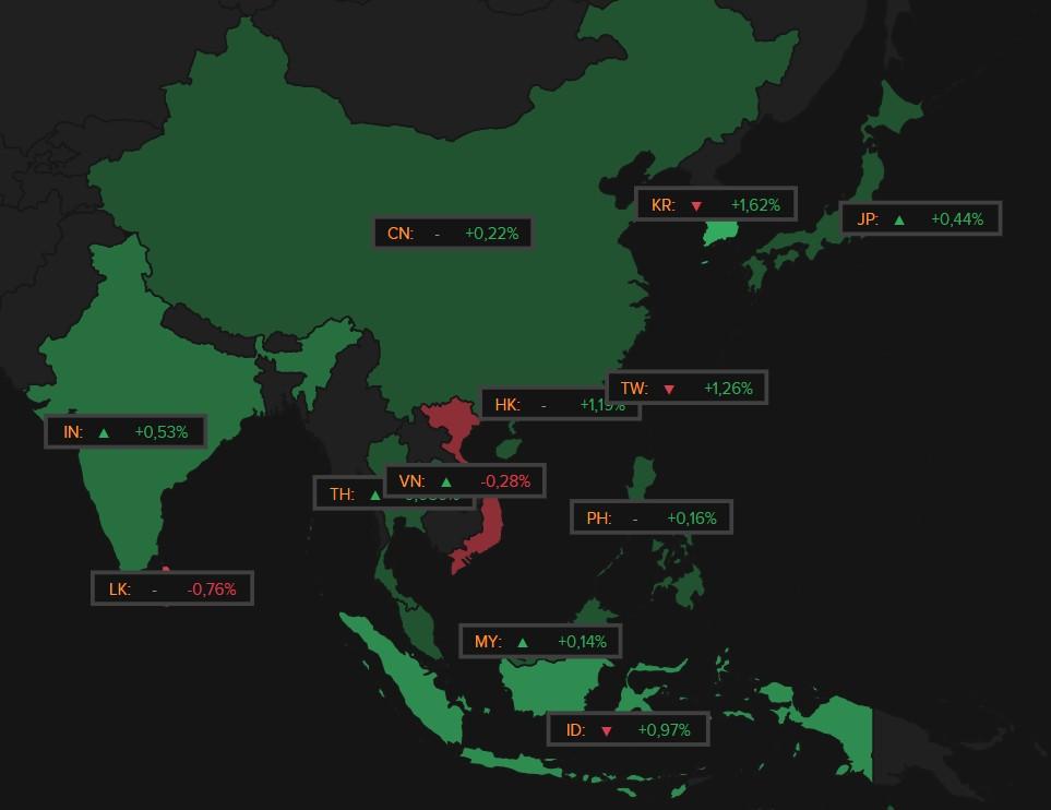 En ook in Azië zat de schwung er goed in. Dat had veel, zo niet alles te maken, met alweer een feestje van de technologie-aandelen. Na het sluiten van de beurs pakte Oracle immers uit met – naast ietwat zwakke kwartaalcijfers – fenomenale vooruitzichten voor de cloud infrastructuur activiteiten. Dat optimisme duwde het aandeel vlot 30% hoger, en joeg de Aziatische techmarkten natuurlijk ook aan. Hongkong won 1,1%, Japan O,4%, Zuid-Korea 1,6% en India 0,6%. In zekere zin was de Chinese beurs - met 0,22% winst – dus een achterblijver. De overkoepelend HS Tech index trok 1,8% hoger en noteert daarmee al 32,8% hoger dan in het begin van 2025