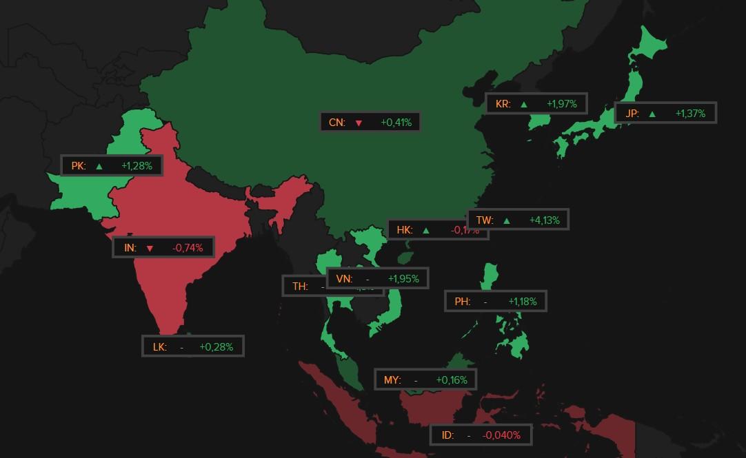 Azië zette vannacht het recent herwonnen positief momentum voort, met sectorrotaties en de energiesector als centrale drivers voor energie-importerende landen zoals Japan en Zuid-Korea. Ook technologie deed het opnieuw goed (TSMC wint  4,9% vannacht), nadat Oracle vannacht 9% hoger koerste dankzij sterke omzetcijfers en sussende taal ten aanzien van het “AI-risico” via massale leningen. En ook Nintendo (+9%) plezierde de beleggers met hernieuwd optimisme over zijn Pokemon spelt. Tot slot voerde ook de exportsector mee het hoge woord. Taiwan sloot 4,1% hoger, Japan 1,4%, Zuid-Korea 2%, terwijl China met 0,4% en Hongkong met een verlies van 0,1% de kat uit de boom keken.