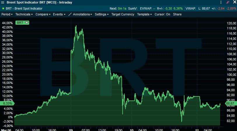 De olieprijs daalde niettemin opnieuw (-3,7% naar 87,94 dollar per Brent-vat. Het Internationale Energieagentschap houdt vandaag spoedzitting , waarop de leden in zouden stemmen om een recordhoeveelheid strategische petroleumreserve vrij te geven om de huidige aanbodschok te milderen. Het zou gaan meer dan de 182 miljoen vaten die de groep in 2022 vrijgaf toen Rusland Oekraïne binnenviel.