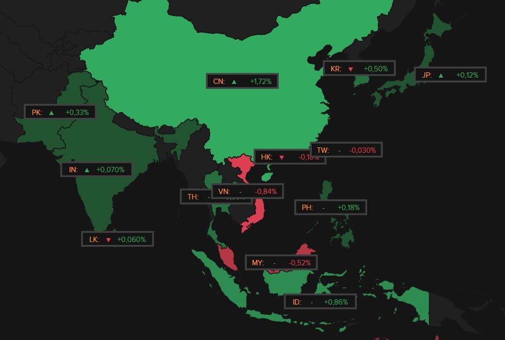 Ook in Azië liet de Oracle-manie zich voelen, want de Aziatische techaandelen profiteerden er van. De beursindexen van Japan (+0,1%), Taiwan (+0,1%) en Zuid-Korea (0,5%) vestigden nieuwe records in wat anders een ingetogen sessie zou worden in afwachting van de hele belangrijke Amerikaanse inflatiecijfers die we later vandaag krijgen. Techbelegger SoftBank (+9%) profiteerde nog het meest, omdat het met het Stargate Project-een sterke partner in Oracle heeft.