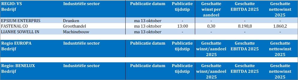 Voor bedrijfsresultaten moet u nog één dagje wachten alvorens het derde kwartaal cijferseizoen van start gaat. En dat wachten wordt opgeleukt door Epsium Enterprise, Fastenal en Lianhe Sowell International.