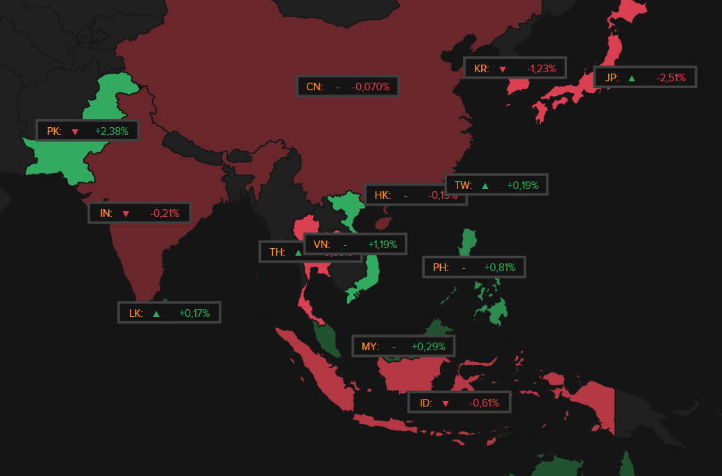 Het herstel en optimisme van Wall Street werd niet gekopieerd in Azië, waar het Chinese ministerie van Handel meent dat de VS niet naar besprekingen kan streven en tegelijkertijd dreigementen kan uiten. Beide landen starten alleszins met het doorrekenen van havengelden aan zeescheepvaartbedrijven die van alles vervoeren. Op de beursvloer verloor voor Zuid-Korea 1,3% en voor Japan -2,5%. Taiwan herstelde 1,2%, omdat grootmacht TSMC een nieuw recordpeil aantikte dankzij de deal tussen OpenAI en Broadcom. China van zijn kant danste rond het nulpunt. Handelsonzekerheid, jawel.
