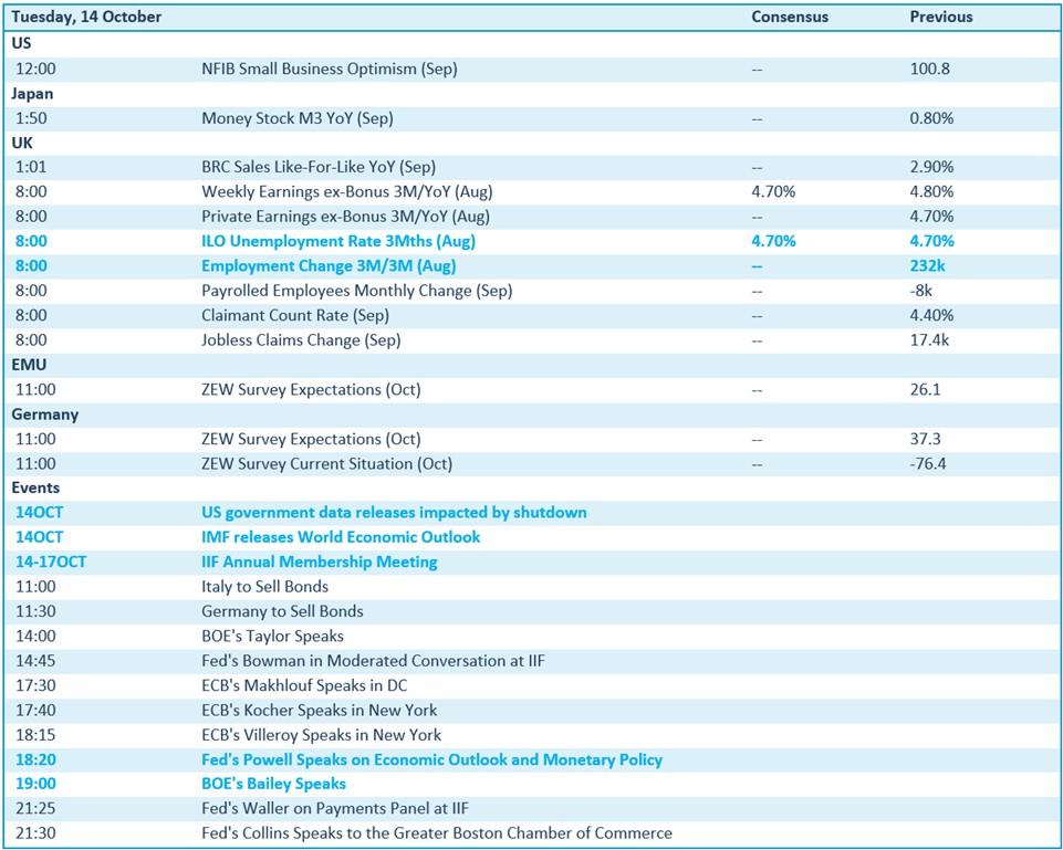 Er staat behoorlijk wat nieuws op de economische kalender, met over de Grote Plas onder meer het Amerikaanse KMO-vertrouwen in september. De Japanse geldhoeveelheid (M3) is daar maar klein bier tegenover, maar dat maakt het VK meer dan goed met een inzicht in de werkgelegenheid. En dan is er nog de EU en Duitsland, die beide een update krijgen van de belangrijker, en betrouwbare, ZEW sentimentsindex. Samen met de publicatie van het World Economic Outlook van het IMF zijn dat duidelijk de speerpunten van de dag, enkele speeches van topbankiers Powell (Fed) en Bailey (BoE) niet te na gesproken.