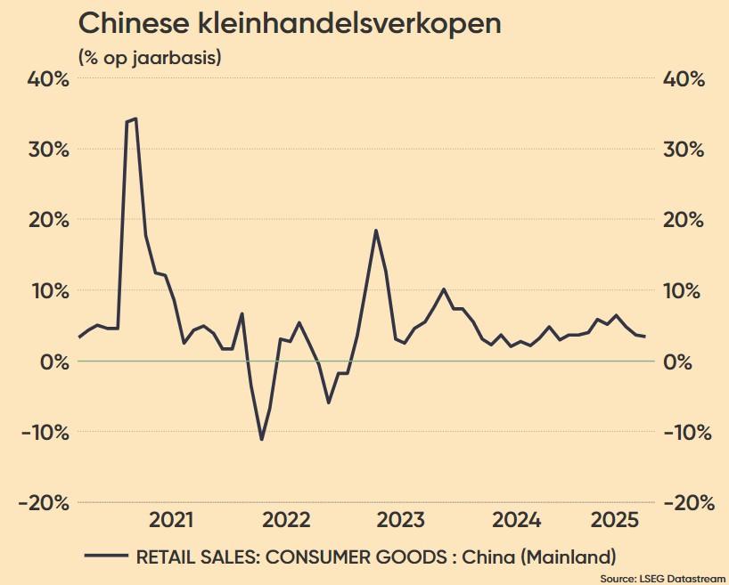 Leuk, maar het mocht best wel wat meer zijn om de hele Chinese economie uit zijn ondertussen lange tijd van ellende te helpen halen. En daarvoor werd en wordt ook gekeken naar de consument, maar die geeft evenmin (helemaal) thuis. De kleinhandelsverkopen stegen vorige maand dan wel met 3,4% op jaarbasis, maar dat is het laagste tempo in acht maanden. Dat komt vooral omdat de stimulans van een inruilprogramma voor consumenten wegebde.
