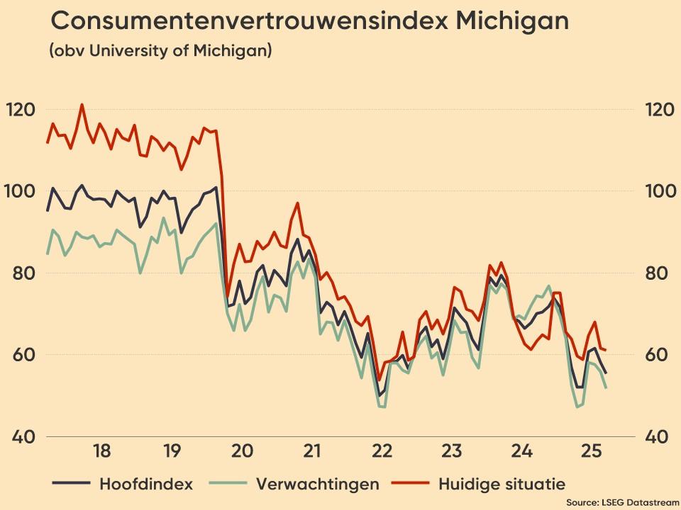 Qua data bleek het Amerikaanse consumentenvertrouwen, via de index van de universiteit van Michigan, in september gedaald te zijn van 58 naar 55,4 punten, terwijl op een status-quo werd gemikt. De tweede opeenvolgende maandelijkse daling duwde het sentiment naar het laagste peil sinds mei, terwijl de verwachtingsindex inzakte van 55,9 naar 51,8 punten. Tot sloot daalde de inflatieverwachting voor 2025 naar 51,8 punten, stabiliseerde de schatting voor 2026 op 4,8%, terwijl de 5-jaarsverwachting steeg van 3,5% naar 3,9%. Warm en koud, dus, voor wat de bewegingsmarge van de Fed betreft.
