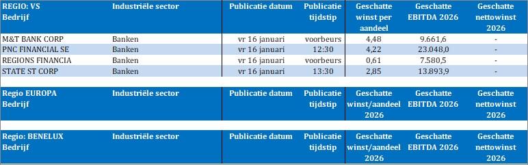 Bedrijfsresultaten komen van M&T Bank, PNC Financial, Regions Financial, State Street.