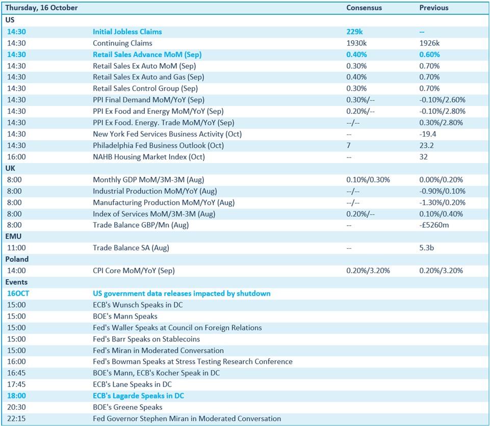 De economische kalender komt opnieuw met een vraag : de VS heeft wel een pak op haar kalender, maar of die omgezet worden in cijfers is door de shutdown hoogst onzeker. Reken er dus niet op. Wel komen er Britse cijfers over de industriële productie aan, naast een update over de Britse én de Europese handelsbalans over augustus. En terwijl Polen trakteert met inflatiedata over september, mag ECB-topvrouw Lagarde zich opmaken voor een speech.
