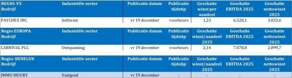Bedrijfsresultaten komen er vandaag van Paychex, Carnival, Immo Moury.