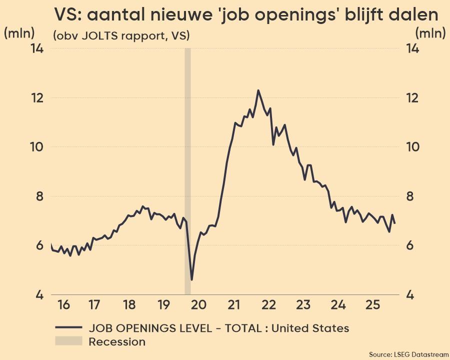 Dan waren de Amerikaanse consumentendata belangrijker. Het vertrouwen verbeterde in maart, omdat een bescheiden verbetering van de inschatting over de huidige omstandigheden opwoog tegen een lichte daling in de toekomstverwachtingen. De gemiddelde inflatieverwachtingen voor 12 maanden stegen in maart tot niveaus die voor het laatst werden gezien in augustus 2025, terwijl het JOLTS-arbeidsmarktrapport opnieuw minder dan 7 miljoen vacatures afficheerde. Samengevat blijft de Amerikaanse economie op een aanvaardbaar tempo draaien.