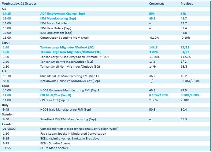 Op de vastrentende en obligatiemarkten was er sprake van een vlucht naar veilige havens. De rendementen op Amerikaanse staatsobligaties daalden, vooral aan de lange kant, omdat handelaren hun toevlucht zochten en zich herpositioneerden in afwachting van mogelijke begrotingsimpasses. De mogelijkheid dat cruciale cijfers (zoals de werkgelegenheidscijfers buiten de landbouw) vertraging zouden oplopen, versterkte de vraag naar duration.