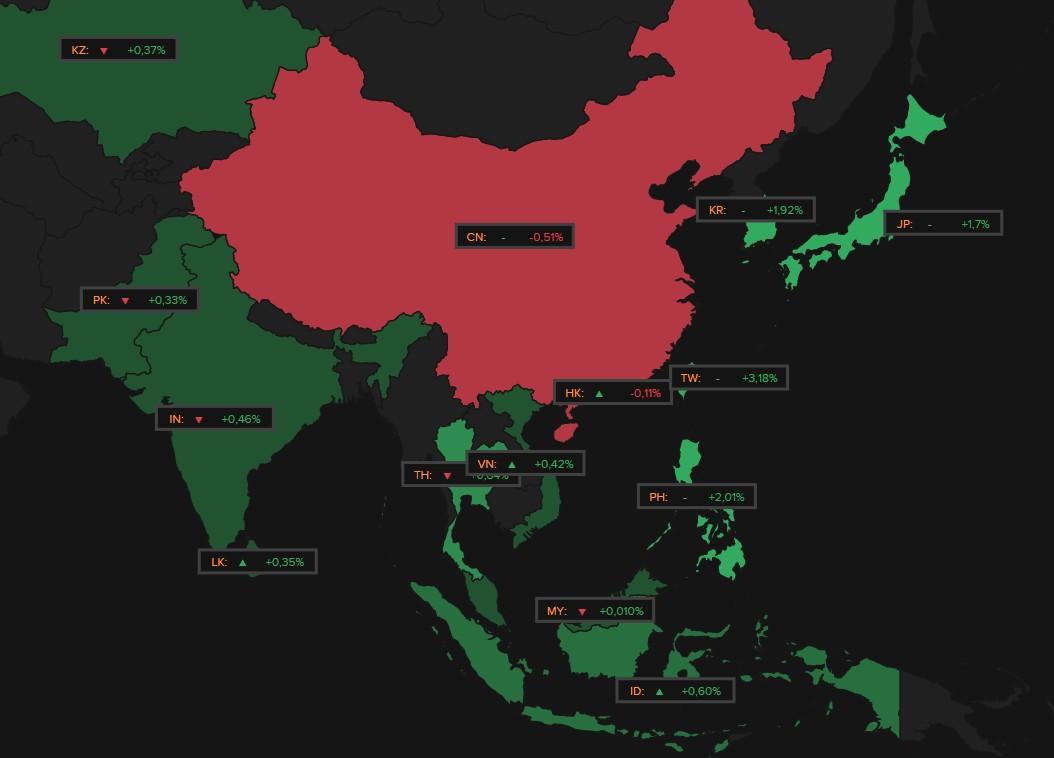 Het Nvidia-effect was in zekere mate duidelijk zichtbaar in Zuid-Korea (+2%) en Taiwan (+3%), maar dan enkel via de hardwarebedrijven met focus op de productie van geheugen en de chips zelf. Denk aan Samsung Electronics (+4,2%) en TSMC (+4,3%). Ook Japan herstelde met een winst van 1,7%, maar dat was te wijten aan andere redenen. Feit is dat Azië toch niet echt ongebreideld aan het feesten ging. Zo verliezen China en Hongkong elk ongeveer 0,5% en daalt de overkoepelende HS Tech index zelfs met 1,4%.
