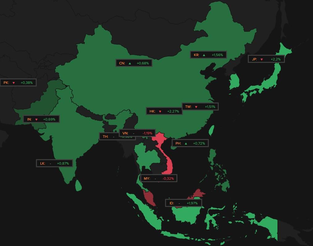 Na de turbulentie van vorige week, opende Azië vannacht de debatten met niet minder dan een vibe: lentefrisse kleuren, want overal zijn er forse winsten. Japan (+2,2%), Zuid-Korea (+1,3%), Hongkong (+2,3%), India (+0,9%) en Taiwan (+1,5%) gaan allemaal als een speer.