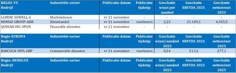 Wat er vandaag mag worden verwacht is duidelijk: onzekerheid, met misschien een lichte vorm van paniek en zeker een duidelijk aanwezige baslijn van ongemakkelijkheid. Volatiliteit is niet iets dat we gewoon zijn geraakt in 2025, dus het zal even duren vooraleer beleggers weer op het gemak zijn. Maar er zijn zekerheden: bedrijven hebben er een heel sterk derde kwartaal opzitten voor wat betreft winstcijfers, de groeicijfers zijn wereldwijd niet hoog, maar wel stabiel, en grote delen van de beurswereld gingen de voorbije 12 tot 24 maanden niet mee in de Amerikaanse AI-hausse.