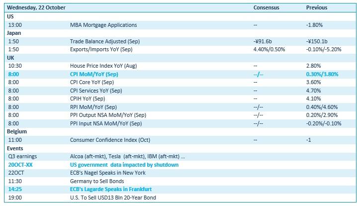 Van de economische data zal u vandaag amper tot niet warmlopen. Het VK komt dan wel nog met inflatiecijfers aandraven, zowel voor de consument als de producent, maar verder moeten we het enkel doen met het Belgische consumentenvertrouwen en een speech van niemand minder dan ECB-tpovrouw Lagarde.