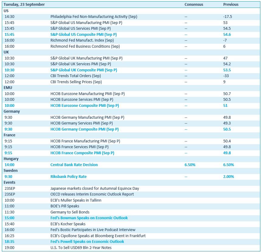 Verder brengt de VS met een update van de Philadelphia Fed-index en de Richmond Index inzicht in de polsslag van de VS, terwijl de centrale banken van zowel Hongarije als Zweden met een rentebesluit op de proppen zullen komen. Dat zal naar verwachtingen weinig concreets opleveren, net zoals de inhoud van de speeches van Fed-directeuren Powell en Bowman.