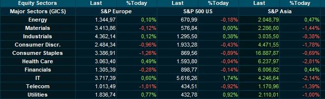 Weerwerk kwam er van de technologiesector (+0,9%), waar de chipmakers zoals ASML (+3%) en ASMI (+2%) alweer de kop trokken. Ook de Europese mijnbouwers (+1,6%) zoals Glencore (+3%) en Rio Tinto (+2%) trokken aan de kar, onder meer omdat de goudprijs alweer doorsteeg tot – alweer - een nieuwe recordhoogte (3.753 dollar per ounce).