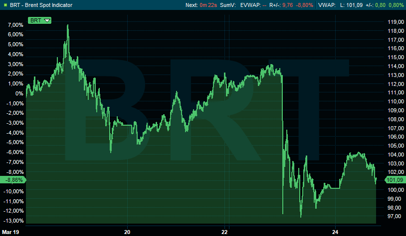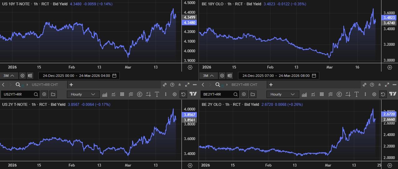 Rond de middag was het Taco-tijd. Vredespresident Trump gaf het ministerie van Oorlog opdracht om de militaire aanvallen op Iraanse energiecentrales en energie-infrastructuur vijf dagen uit te stellen, afhankelijk van het succes van de lopende (zeer goede en productieve) gesprekken in het weekend. Die laatste ontlokte in Iran een stevige ontkenning uit, maar goed. Wat de status van de contacten ook is, de markten vertaalden dit in “de-escalatie”, in ieder geval op de korte termijn. Een deel van de agressief gepositioneerde “stagflatiehandel” werd afgewikkeld. Euforie.