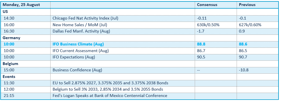 Na de euforische stijging van vrijdag, die werd veroorzaakt door een opvallend gematigde toon van Fed-voorzitter Powell, bracht maandag een “afnemende opluchtingsrally” met zich mee als gevolg van lage volumes (bankholiday in het Verenigd Koninkrijk), toen de markten een pauze inlastten na het gematigde momentum van vorige week. Aandelen daalden ten opzichte van recente hoogtepunten, met name in cyclische sectoren en de gezondheidszorg, terwijl technologie zich veerkrachtig toonde. De toekomstige richting hangt nu af van de Amerikaanse PCE-inflatiecijfers en de winstcijfers van Nvidia.